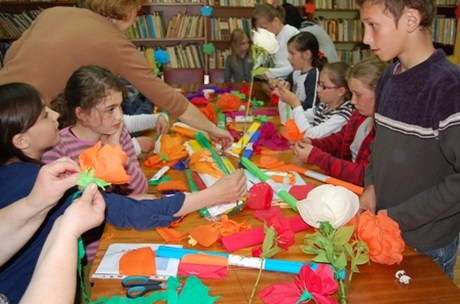 Mistrzem został PATRYK MICHALSKI, który w nagrodę otrzymał cenną książkę Kazimierza Górskiego „Piłka jest okrągła” z autografem zmarłego Orła Piłki Nożnej. Warsztaty ozdób papierowych poprowadziła Pani Halina Puk z Krosnowic, o której mówi się i pisze „kobieta o złotych rękach”. Efektem wspólnej pracy były kolorowe róże z bibuły dla mam, a przy ich wykonywaniu czytelnikom cierpliwie pomagała bibliotekarka Monika Fedak.