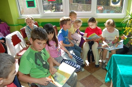 Malutka biblioteka w Bierkowicach przyjęła wielu gości. Przedszkolaki i uczniowie siedzieli między regałami, pod stolikami, przy biurkach i nie tylko… Atmosfera bardzo rodzinna, bo też miejscowy bibliotekarz Bogumiła Płoskonka to „kochana pani Bogusia”. Gościem był Dyrektor Biblioteki Publicznej Gminy Kłodzko Mariola Huzar, która czytała o oślej skórce. Natomiast dzieci dzieciom przeczytały blisko 20 bajek i ciągle było mało.