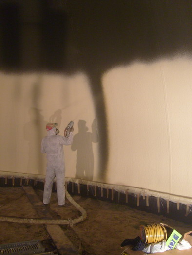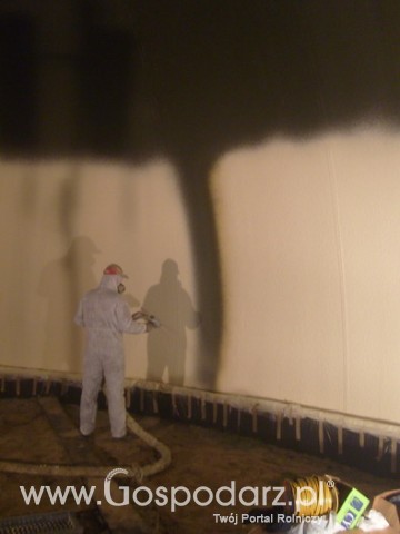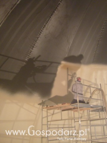 Po natryśnięciu pianki montowana jest od środka klatka ze stali zbrojeniowej i na tak przygotowaną powierzchnie natryskiwany jest beton.