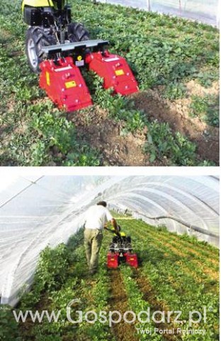 Specjalistyczna glebogryzarka rzędowa wykorzystywana w ogrodnictwie do utrzymania w odpowiedniej strukturze międzyrzędzi. Możliwość regulacji szerokości pracy oraz przesunięcia sekcji roboczych względem jednostki napędowej daje szerokie możliwości wykorzystania maszyny w różnego rodzaju uprawach warzywniczych. Przeznaczona jest do adaptowania z traktorkami jednoosiowymi różnych marek.
