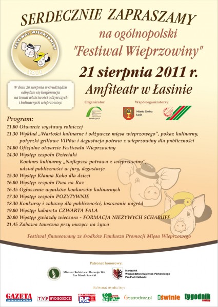 Serdecznie zapraszamy na ogólnopolski "Festiwal Wieprzowiny" 21 sierpnia 2011 Amfiteatr w Łasinie