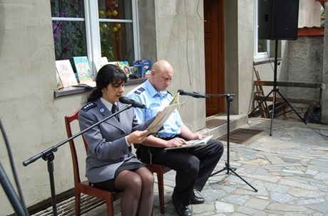 W ogrodzie Filii nr 2 w Krosnowicach przedszkolaki spotkały się z policjantami Komendy Powiatowej Policji w Kłodzku. Tym razem w roli czytających gości wystąpili oficer prasowy – nadkomisarz Wioletta Martuszewska, dzielnicowy Emil Kowalski oraz bibliotekarz z Żelazna Magdalena Berestecka. Maluchy z uwagą słuchały edukacyjnych opowieści, a także przestróg płynących z bajek. Niektóre bajkowe sytuacje miały odniesienie do rzeczywistości. Dzieci bez trudu potrafiły wskazać właściwe postępowanie bohaterów. Pod czujnym okiem pani nadkomisarz dzieci mówiły prawdę i tylko prawdę, niejednokrotnie donosząc na swoich rodziców. Wykazały się także wiedzą nt. bajki Carlo Collodi „Pinokio”. Do notesu pana dzielnicowego oświadczyły, że nigdy nie kłamią, czego dowodem były nosy naturalnej wielkości. W ogrodowej scenerii miał również miejsce koncert na trzy flety w wykonaniu byłych przedszkolaków, a dzisiejszych uczniów miejscowej szkoły podstawowej. Dyrektor Biblioteki Publicznej Gminy Kłodzko Mariola Huzar i bibliotekarz Małgorzata Saczywko bardzo dziękują Pani Marii Zmysłowskiej za dużą pomoc przy organizacji spotkania literackiego dla dzieci.