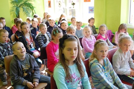 Malutka biblioteka w Bierkowicach przyjęła wielu gości. Przedszkolaki i uczniowie siedzieli między regałami, pod stolikami, przy biurkach i nie tylko… Atmosfera bardzo rodzinna, bo też miejscowy bibliotekarz Bogumiła Płoskonka to „kochana pani Bogusia”. Gościem był Dyrektor Biblioteki Publicznej Gminy Kłodzko Mariola Huzar, która czytała o oślej skórce. Natomiast dzieci dzieciom przeczytały blisko 20 bajek i ciągle było mało.