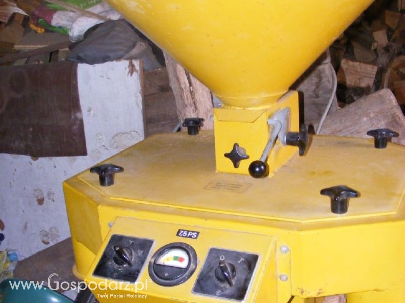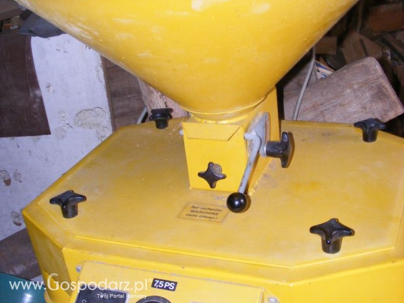 Niemiecki śrutownik bijakowy poziomy na dwa worki, silnik 5,5KW; 2915 obr/min. dwubiegowy ze wskaźnikiem obciążenia. Bardzo mało używany.