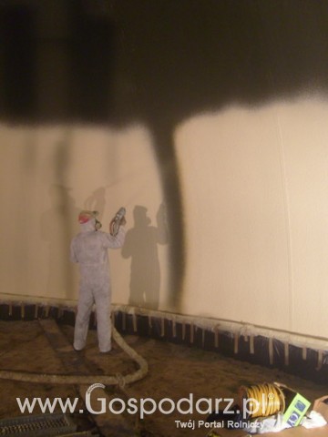 Po natryśnięciu pianki montowana jest od środka klatka ze stali zbrojeniowej i na tak przygotowaną powierzchnie natryskiwany jest beton.