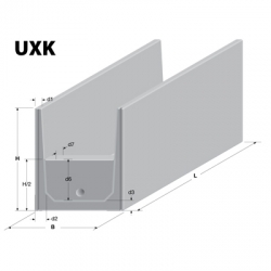 Ściany oporowe typu „UX(X)” mogą być wykonane na wymiar o długości od 50 – 390cm. Dla uzyskania perfekcyjnego obciążenia środek elementu należy wypełnić minimum do połowy jego wysokości ziemią, piaskiem lub żwirem. Na specjalne zamówienie możemy wykonać dodatkowe płyty, które umieszczone na górnych krawędziach mogę przenieść maksymalne dopuszczalne obciążenie na jedną oś do 15 ton. W standardzie mamy również element zwięczający,wypełniony minimum do połowy wysokości płytą betonową. Wysokość płyty zamykającej może być dostosowana do potrzeb Klienta i zawierać wyprofilowany otwór na odprowadzanie wód deszczowych. |