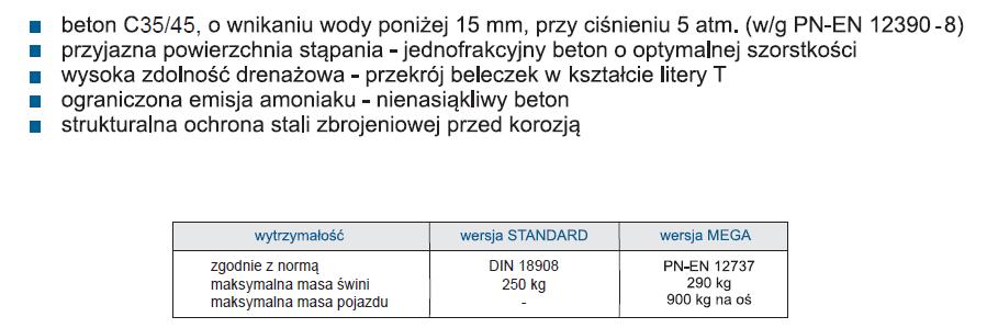 * długość modułowa ( długości rzeczywiste rusztów są o 10 mm mniejsze) ** masa orientacyjna |