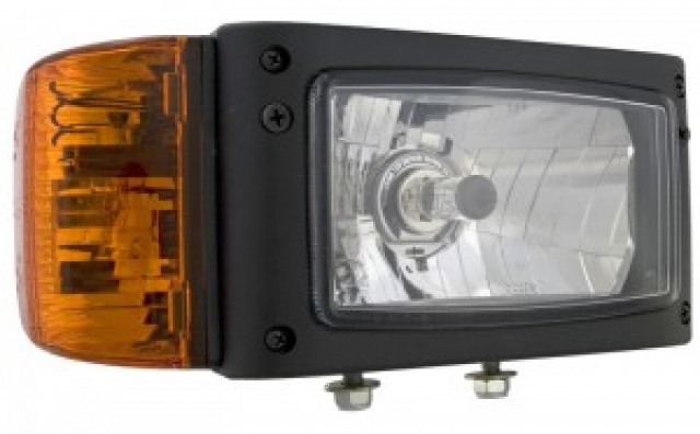 R0586 Reflektor przedni H4 ze zlączem AMP (mijania, drogowe, pozycyjne, kierunkowskaz) - prawy zestaw zawiera żarówki H4 12V + P21W 12V / żarówka W5W Wymiary : 245x110x124 Budowa: ? element optyczny z tworzywa ? szyba ze szkła ? obudowa z czarnego tworzywa ? ramka z czarnego tworzywa ? regulatory położenia ? kierunkowskaz ? wiązka przewodów z przelotką gumową ? złącze AMP ? żarówki ? system umocowania i regulacji Dodatkowe walory: Układ optyczny zaprojektowany w technologii swobodnych pól, sprawia że reflektor ma nowoczesny wygląd oraz lepsze od poprzednika (reflektor typu REPR1) parametry świetlne. Żarówki: Przystosowane do żarówek typu: H4 12V 60/55W lub H4 24V 75/70W W5W 12V lub 24V o trzonku W2.1x9.5d - dla świateł pozycyjnych P21W 12V lub 24V o trzonku BA15s - dla świateł kierunku jazdy Zalecenia Produkty typu RE0585 są zamiennikami reflektorów typu REPR1. Parametry Klasa szczelności IP55. Liczba cechowania dla świateł drogowych określająca maksymalną światłość wynosi 12,5 (tj. ok. 60 lx w odl. 25 m). Zastosowanie dedykowane Uniwersalne Przykładowe zastosowania: ? maszyny drogowe ? koparko-ładowarki ? terenowe wózki widłowe ? kombajny rolnicze ? pługi odśnieżne ? pojazdy specjalne: Merlo, JCB, Genie Terex, Manitou, Ausa, Eurocomach Kod homologacji: 049 Opakowanie: 1szt/karton WESEM REPR2.42741
