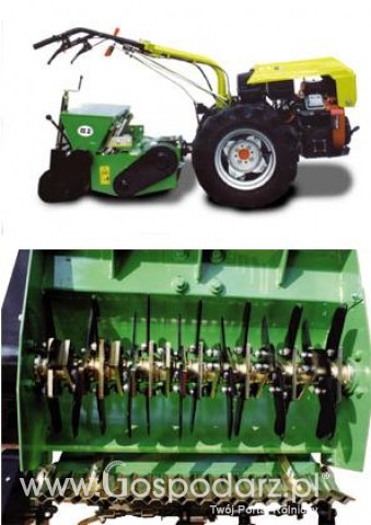 COMBI 62 jest urządzeniem agregowanym z ciągniczkami jednoosiowymi. Służy do regeneracji darni nacinając ziemię w odległości co 3 cm w zakresie głębokości od 1 cm do 6 cm. Nabudowany siewnik umożliwia dosiewanie nasion trawy. Dzięki temu uzyskujemy możliwość zaoszczędzenia ilości przejazdów i dokonania regeneracji zniszczonego trawnika w krótkim czasie. Maszyna jest dostosowana do wszystkich typów ciągniczków jednoosiowych o mocy 12 KM do 14 KM