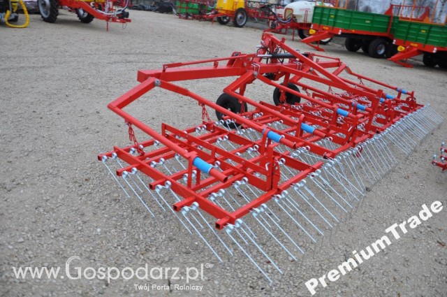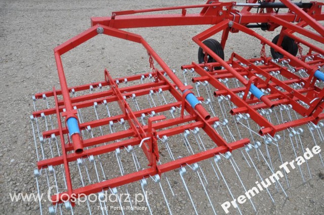 Elementami roboczymi tej maszyny są zęby drutowe z regulowaną wysokością pracy - szerokość robocza to 5,0m. i 6,0m. składane hydrauliczne. Maszyna ta posiada też koła podporowe, które też mają regulacje wysokości.