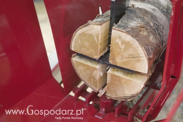 Maszyna wyposażona jest w piłę tarczową i może łupać pnie do 30 cm średnicy.